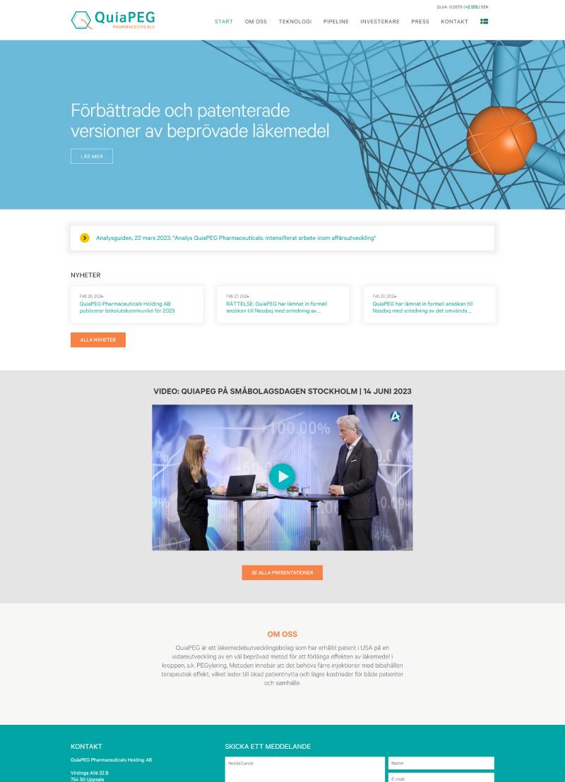 QuiaPEG, startat i Uppsala 2012, är framträdande inom läkemedelssektorn med sin Uni-Qleaver® plattform för kontrollerad frisättning, omvandlande konventionella läkemedel till framtidens terapier. Med fokus på innovation förbättrar de patientresultat och läkemedelseffektivitet, vilket etablerar dem som en nyckelspelare i läkemedelsinnovationen. Sedan 2020 är de noterade på Nasdaq First North Growth Market och är dedikerade till att driva vetenskaplig excellens och strategiska partnerskap i läkemedelsutvecklingen.
