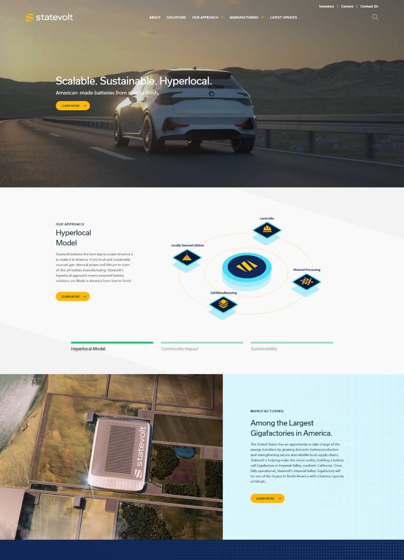 Statevolt, grundat 2021 av Lars Carlstrom, är ledande inom hållbar energi med fokus på hyperlokalt produktion av litiumjonbatterier. De planerar att öppna en Gigafabrik i Imperial Valley, Kalifornien, som förväntas producera årligen 54 GWh, skapa arbetstillfällen och säkerställa leveranskedjans motståndskraft. Dessutom expanderar de sina verksamheter internationellt genom att öppna en gigafabrik i Förenade Arabemiraten, vilket visar deras globala ambitioner för hållbar energiproduktion. Genom samarbete med lokala samhällen, Imperial Valley College och teknologipartners som Storedot, banar Statevolt väg för gröna energilösningar inför framtiden.